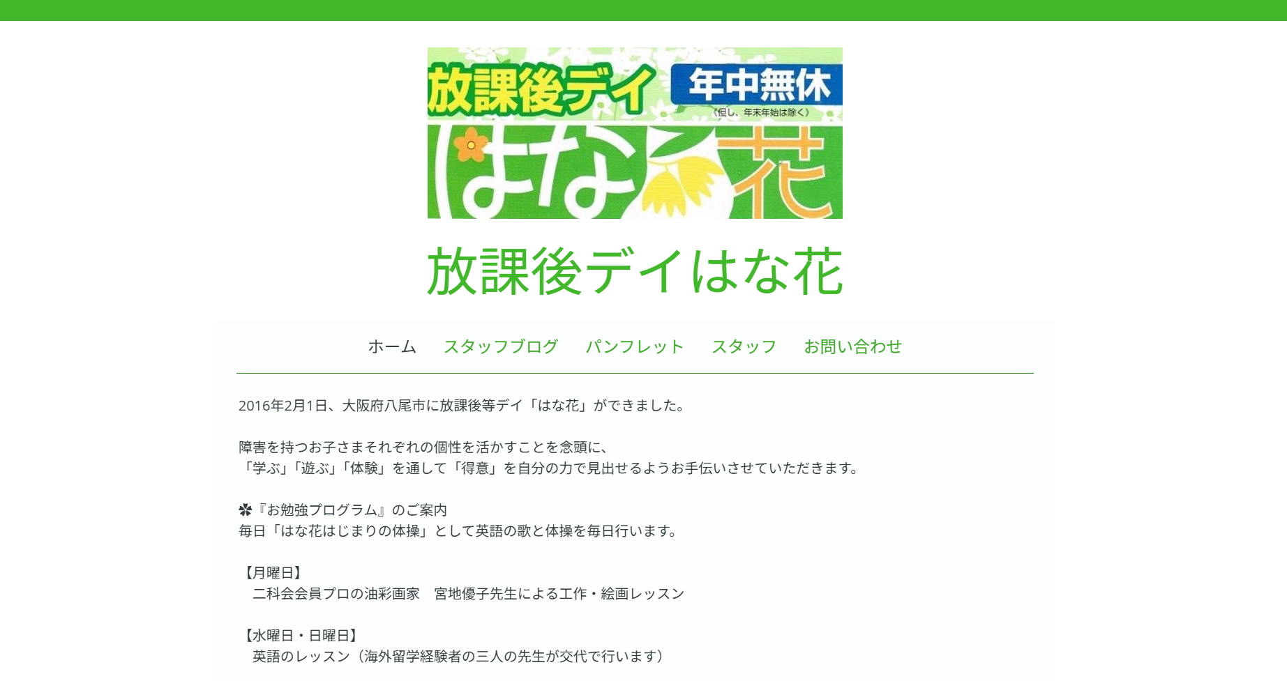 はな花は大阪府八尾市の放課後等デイサービスです。一人ひとりの個性を大切にし、「学ぶ・遊ぶ・体験」を通して得意分野を伸ばします。月曜にはプロの油彩画家による絵画・工作レッスンなどアート療育を実施し、創造力や感性を育みながら自信と豊かな表現力を向上させます。