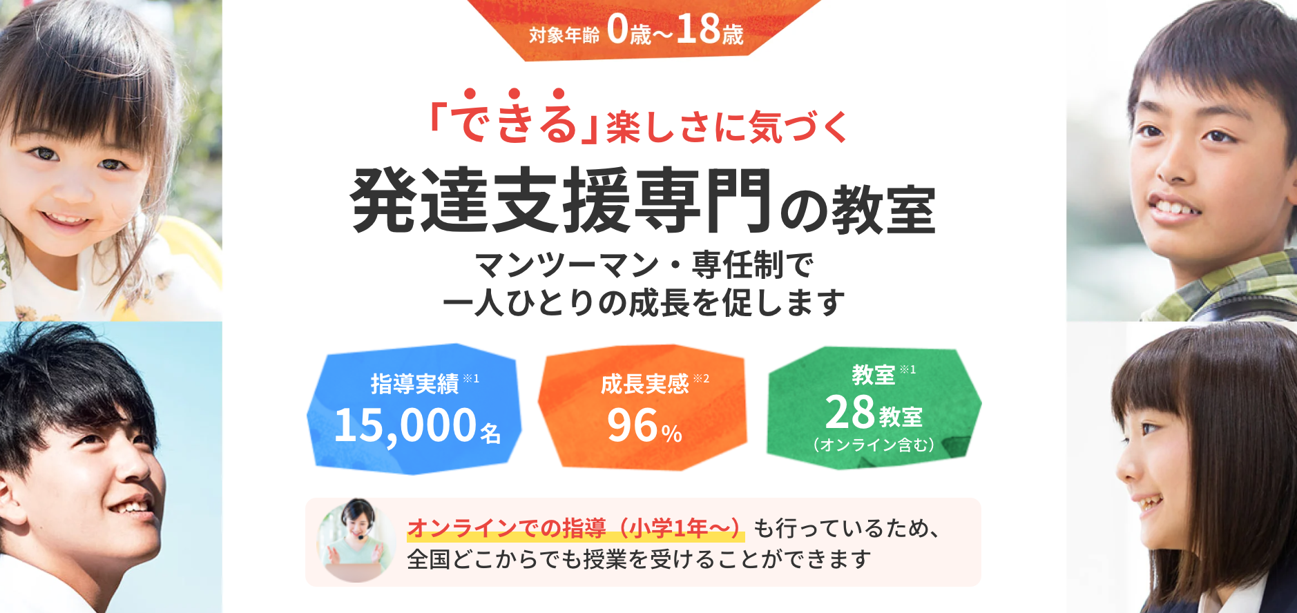 0歳〜高校生まで幅広い年齢に対応