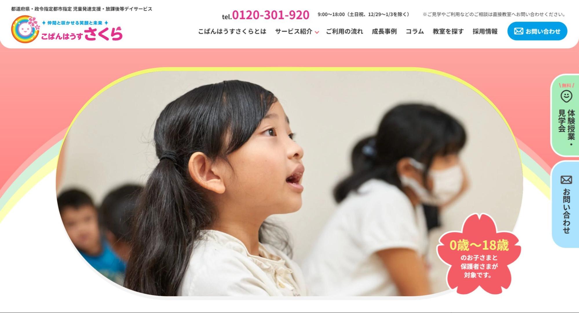 全国で221ヶ所の事業所を展開する「こぱんはうすさくら」では、大半の施設が児童発達支援と放課後等デイサービスを併設しています。0〜18歳まで利用できるため、サービスの種類が変わる就学時も新たな療育施設を探すことなく通い続けられる点が特長です。