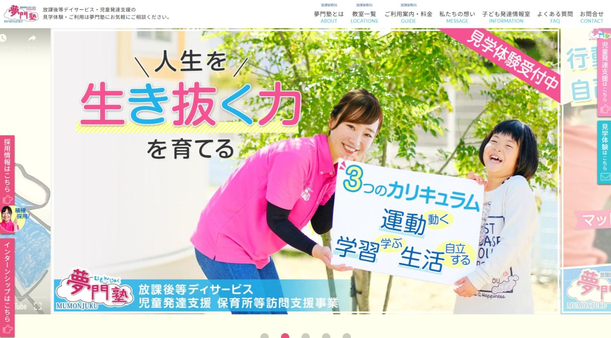 人生を生き抜く力を育てるがテーマの「夢門塾」では、運動・学習・生活の3つを軸にしたカリキュラムを組んでいます。
