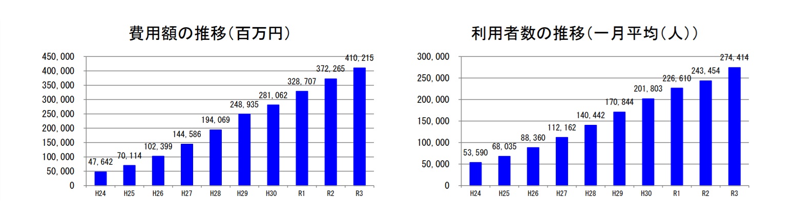 費用額・利用者数がどちらも増加傾向にあることから、今後も放課後等デイサービスの需要は高まり続けることが予想できます。