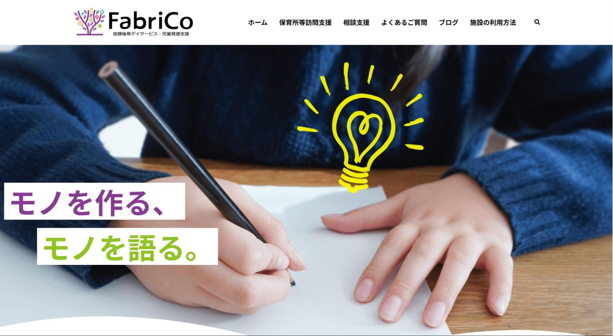「モノを作る、モノを語る。」がコンセプトの療育施設「FabriCo」は、コンセプトや施設名のとおり、ものづくり(Fabrication)に特化したプログラムが特徴です。