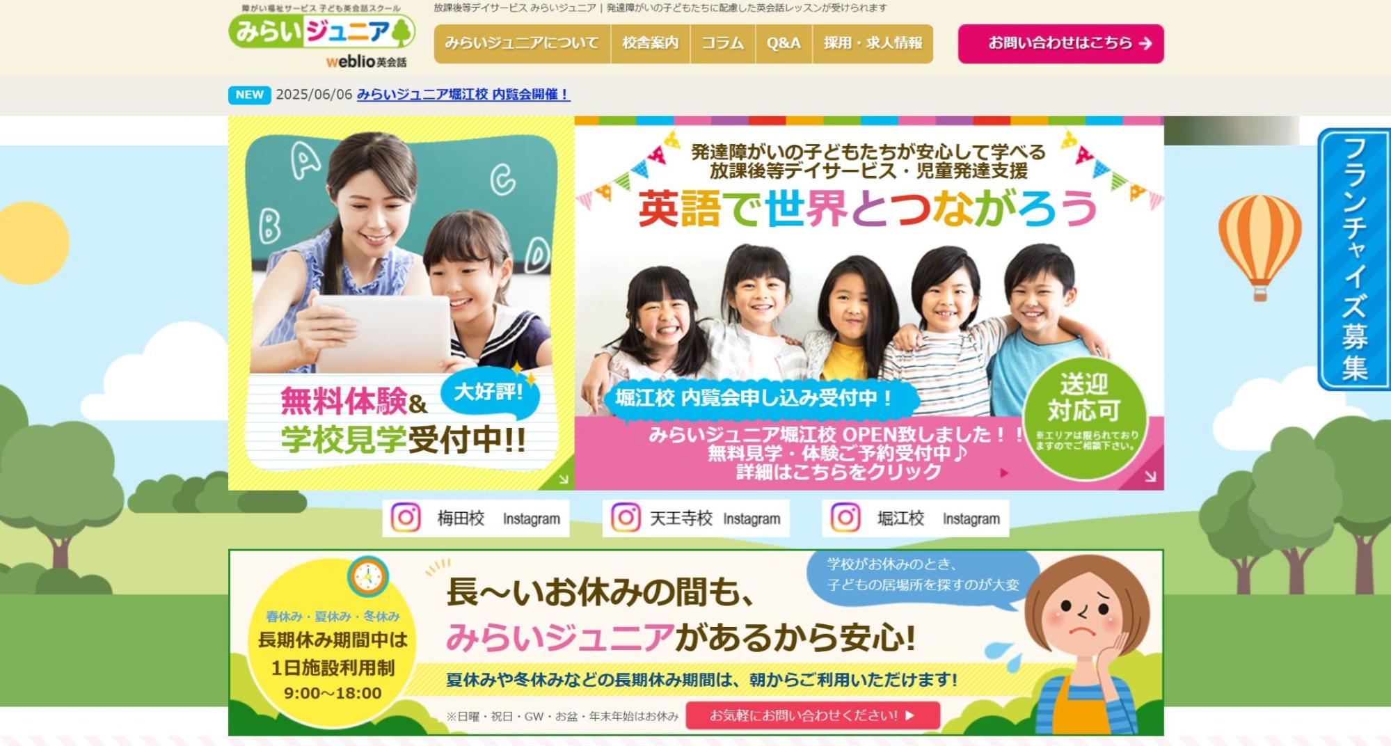 英語学習に特化した「みらいジュニア」は、マンツーマンのオンラインレッスン付き放課後等デイサービスです。
