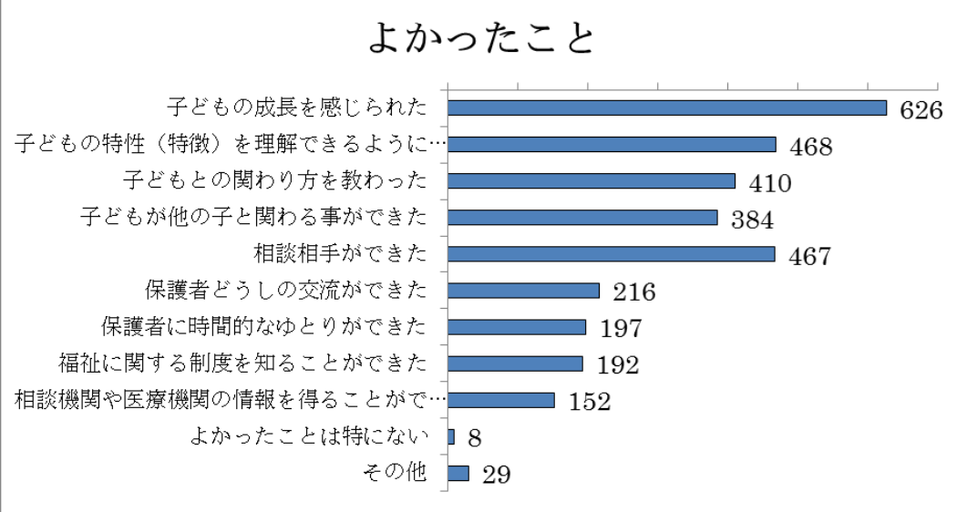 療育施設は、発達に特性のある子どもを育てる保護者同士が支え合う貴重な場でもあります。療育に通ってよかった理由の一つに、「保護者どうしの交流ができた」があります。